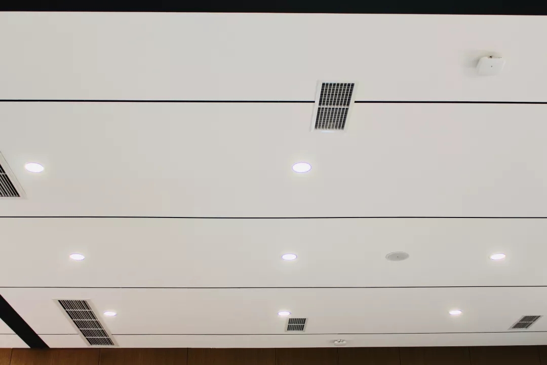 吊頂工序完工。角線安裝目視水平良好,扣板相互之間的縫隙高于驗收標準,外觀上要求無起泡、裂縫等,整體平整性好。