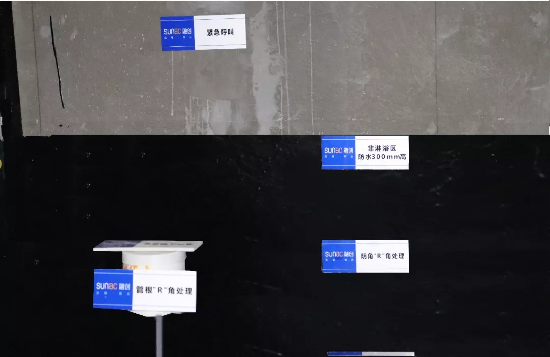 標(biāo)準(zhǔn)區(qū)防水約300mm高、潔具位置防水約1200mm高、墻根陰角處進行“R”角處理、衛(wèi)生間門口防水約500mm寬、側(cè)面外延約200mm寬、所有防水工序均進行2-3遍……這是海驪在項目防水工序所產(chǎn)出的數(shù)據(jù),完全優(yōu)于行業(yè)現(xiàn)有標(biāo)準(zhǔn),全面杜絕滲漏現(xiàn)象。
