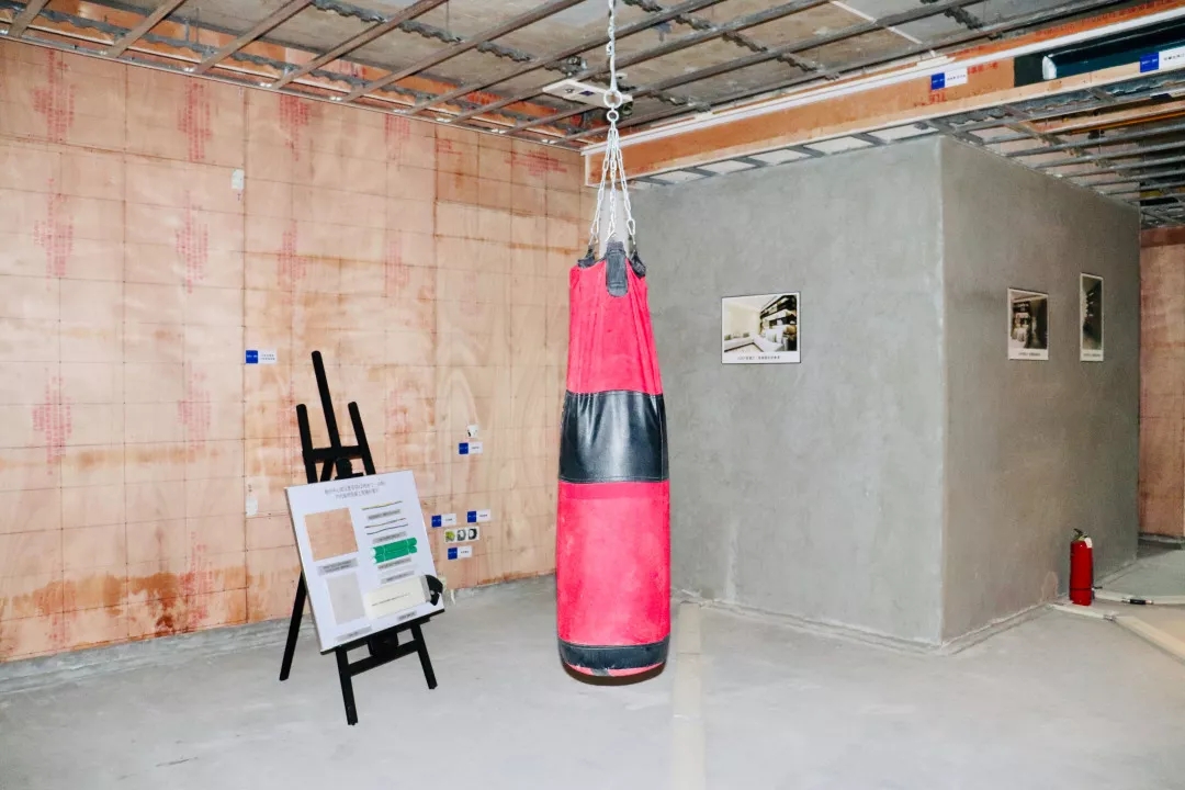 迎門而進,客廳天花板主燈懸掛點下,吊置的一個約100KG的沙袋像一記重拳深深地震撼著每一位來訪客戶。