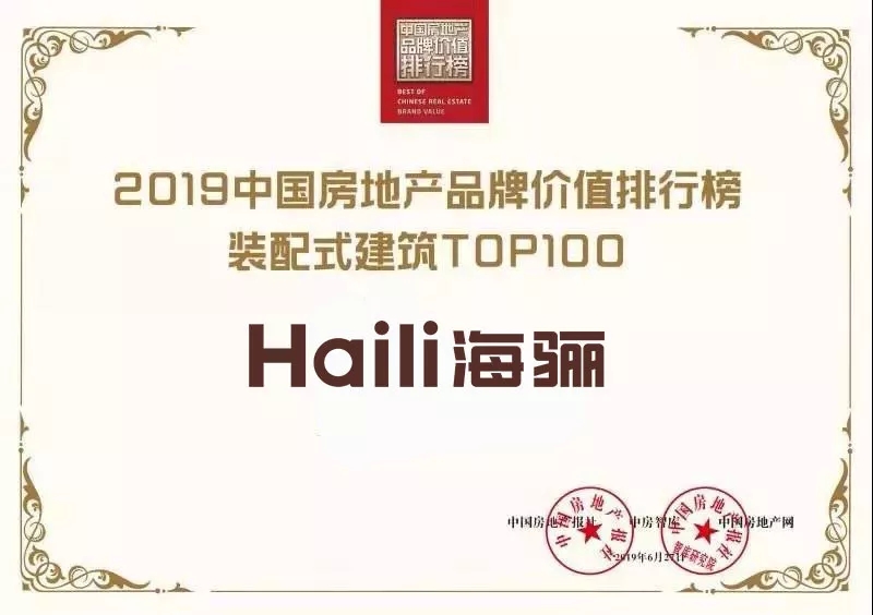 近日,在中國房地產(chǎn)報(bào)社、中國房地產(chǎn)網(wǎng)、中房智庫聯(lián)合主辦的“2019中國房地產(chǎn)品牌大會(huì)上,海驪摘得“2019中國房地產(chǎn)品牌價(jià)值榜”裝配式建筑TOP100的殊榮。