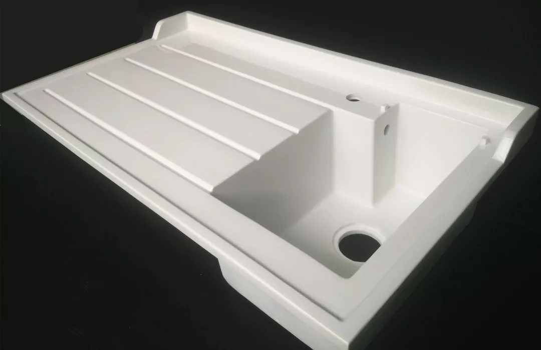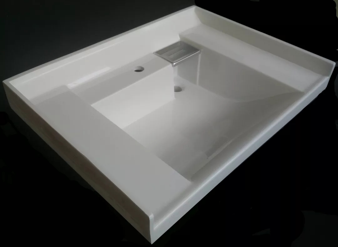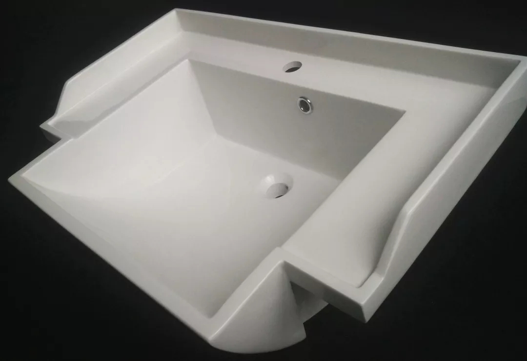 海驪整體臺盆產(chǎn)品采用一體化設計,無衛(wèi)生死角,易清潔;結構穩(wěn)定,韌性強;表面硬度高,巴氏硬度可達63,光澤度高;耐熱水80℃以上,無裂紋,不起泡,吸水率<0.3%;耐候性:抗黃變,耐酸堿,不易老化。